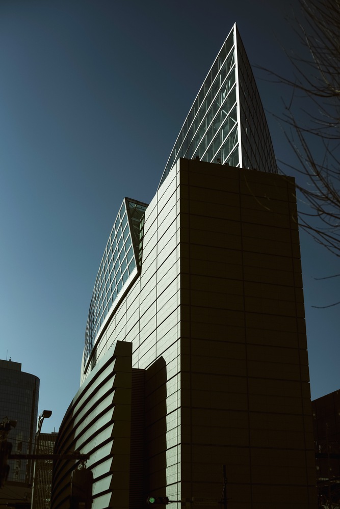 The building, which received the winter sun, was very sharp and in a dark shade. 冬の陽を受けるその建物は、とても鋭く、濃い陰影の中にあった。