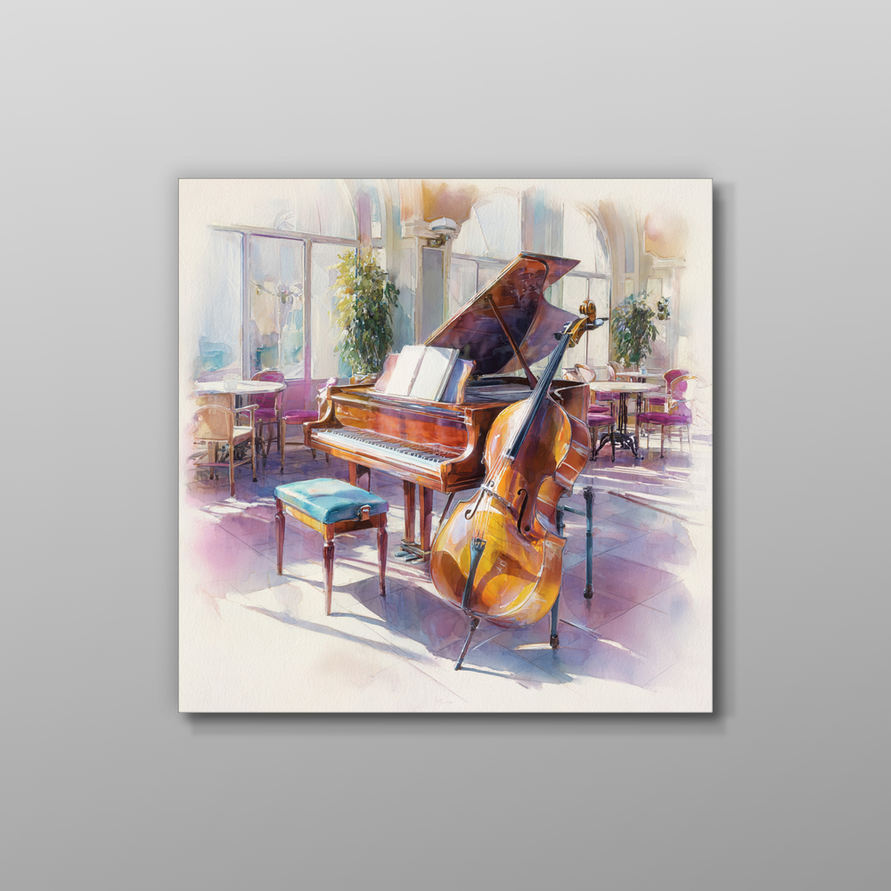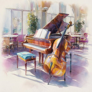 柔らかな光が楽器を照らす午後のひととき。旋律が溶け出すような空間を、情緒豊かな色彩で描き上げました。