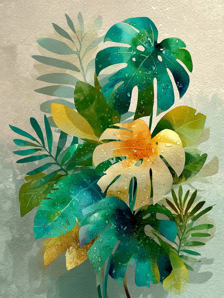 雨上がりの光をまとい、しなやかに広がる緑の生命力。空間に心地よい静寂と、瑞々しい癒やしを添えてくれます。