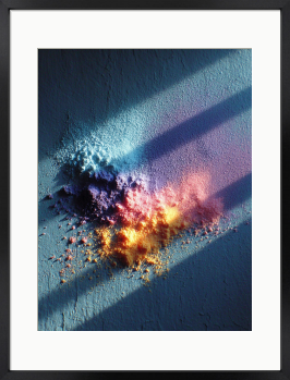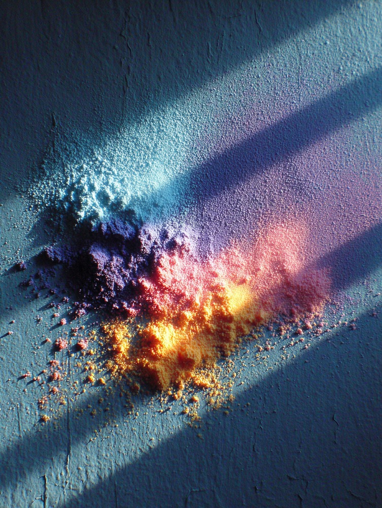 暗闇の中に差し込む光が、色とりどりの輝きを呼び覚ます。未来への希望を感じさせる、エネルギッシュな一枚。