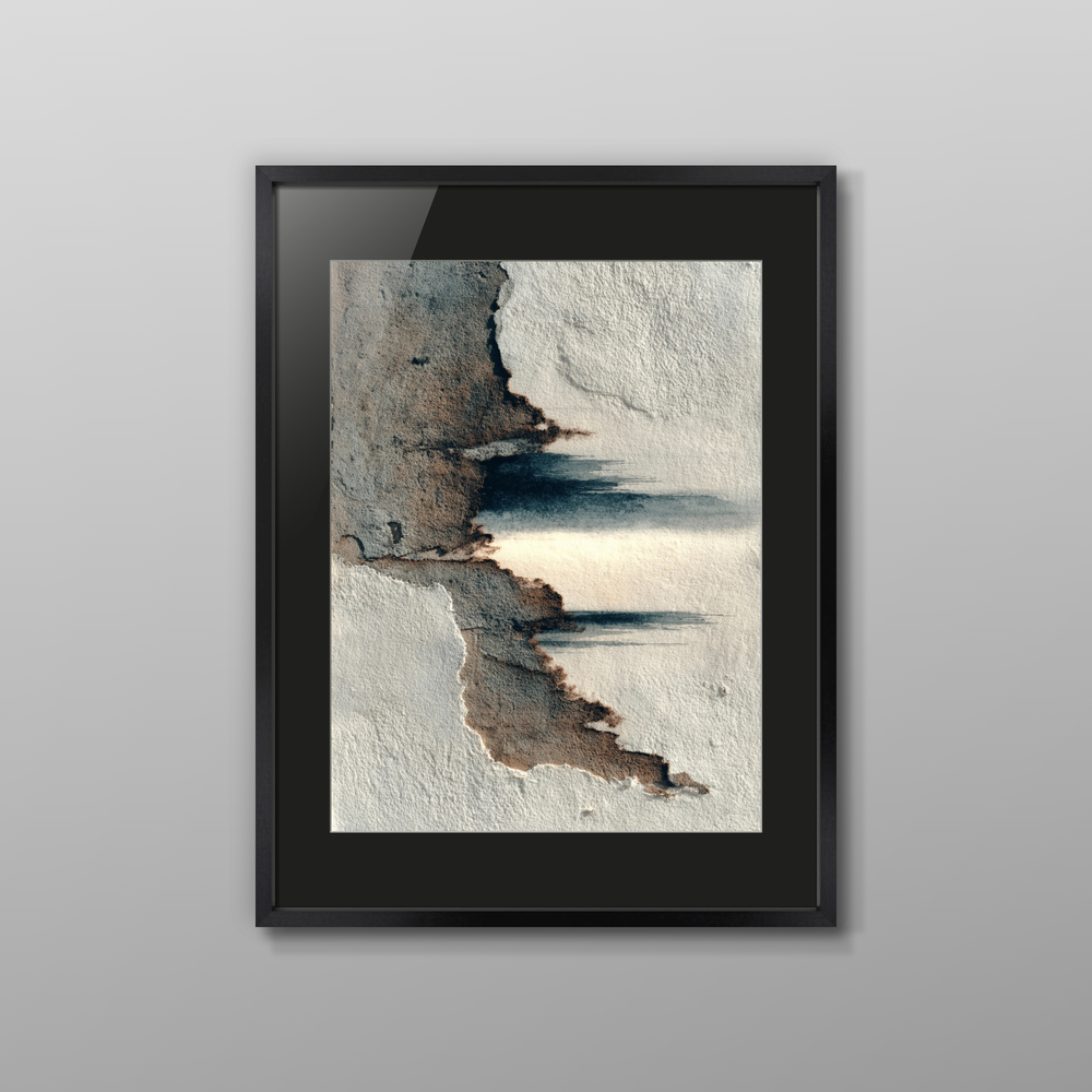 削り取られた跡や深い藍色が、心にすっと馴染む。忙しい日常を忘れて、静かに眺めていたくなる一枚です。