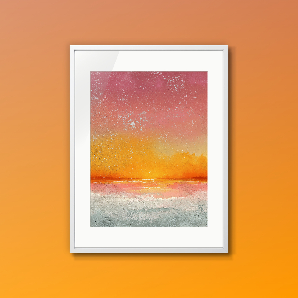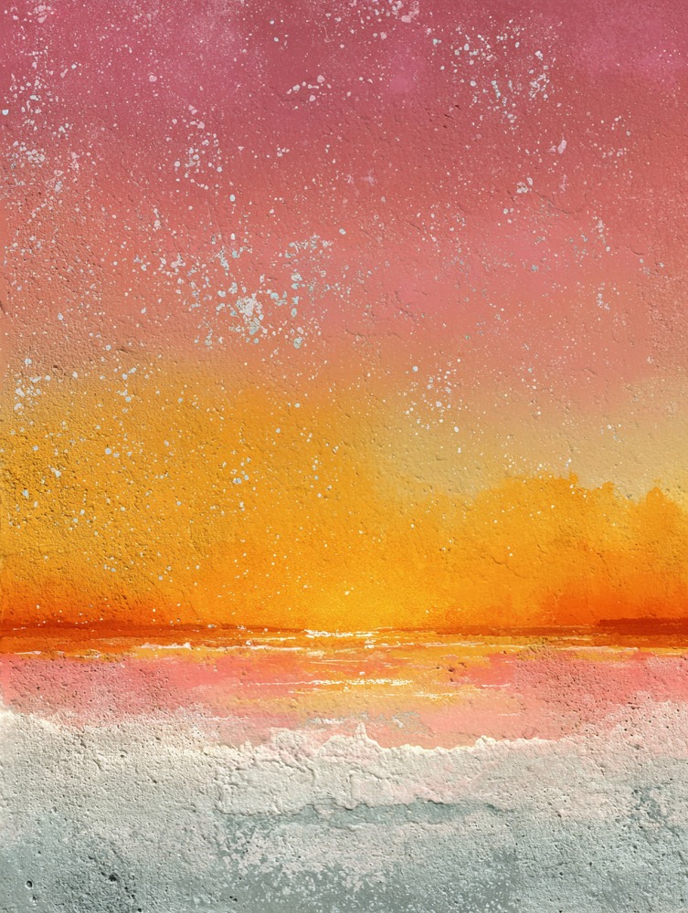 ざらりとした質感に染み込む、夕暮れの温かな記憶。ただそこにあるだけで、心に灯がともる一枚です。