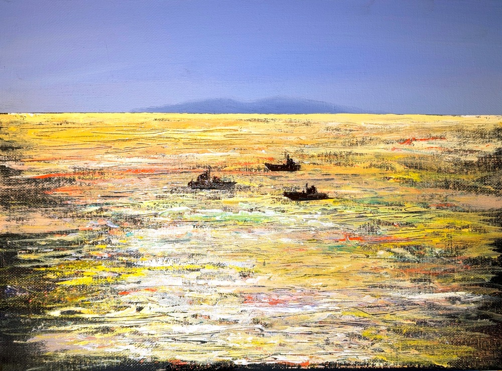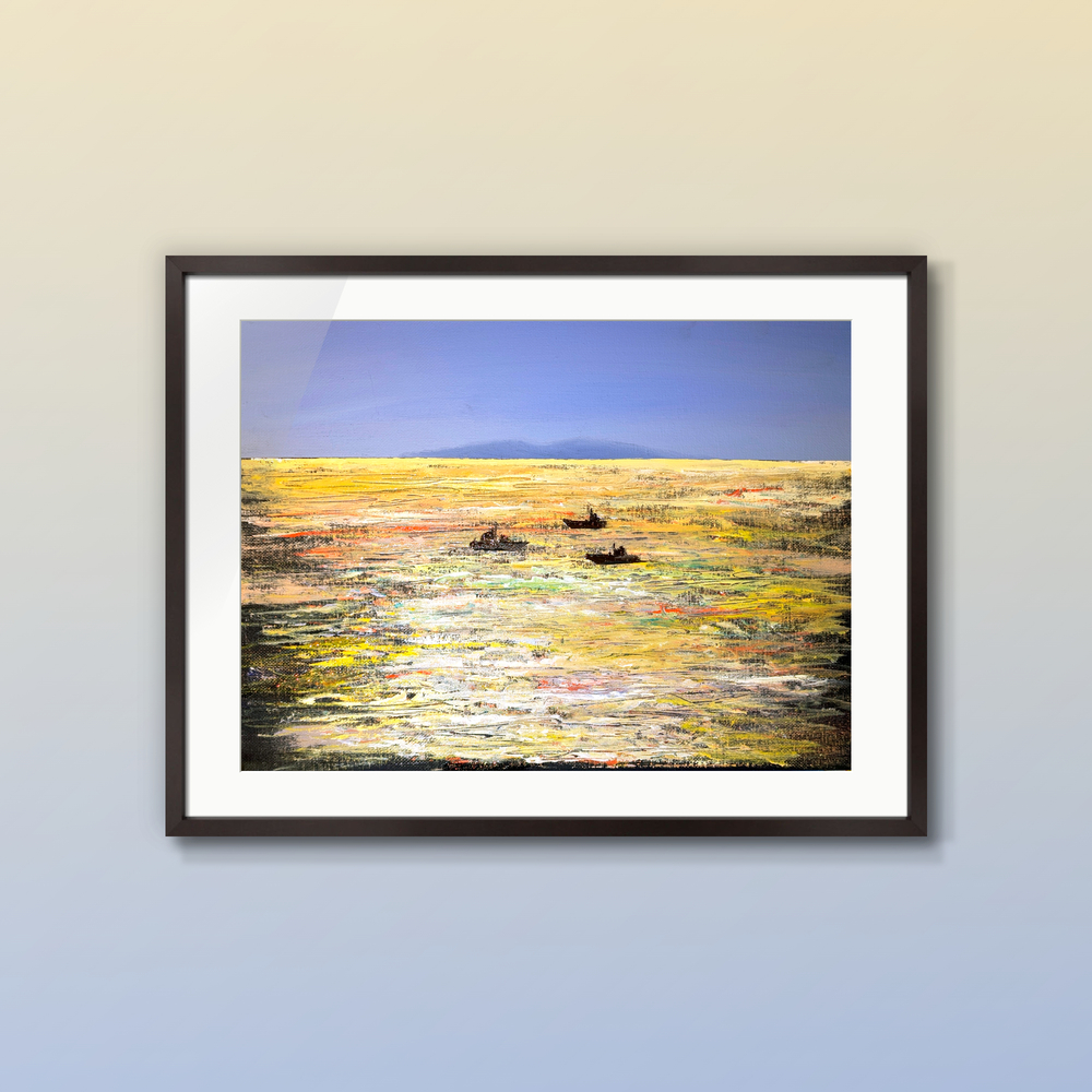 この光は、淡路島の早朝、限られた数分間だけに見られる現象です。この瞬間を逃すと二度と同じ色彩には出会えません。このキャンバスには、私がその瞬間に感じた『静寂』と『生命の息吹』をすべて封じ込めました。