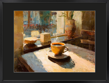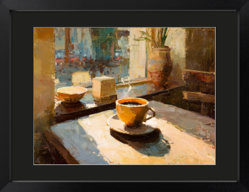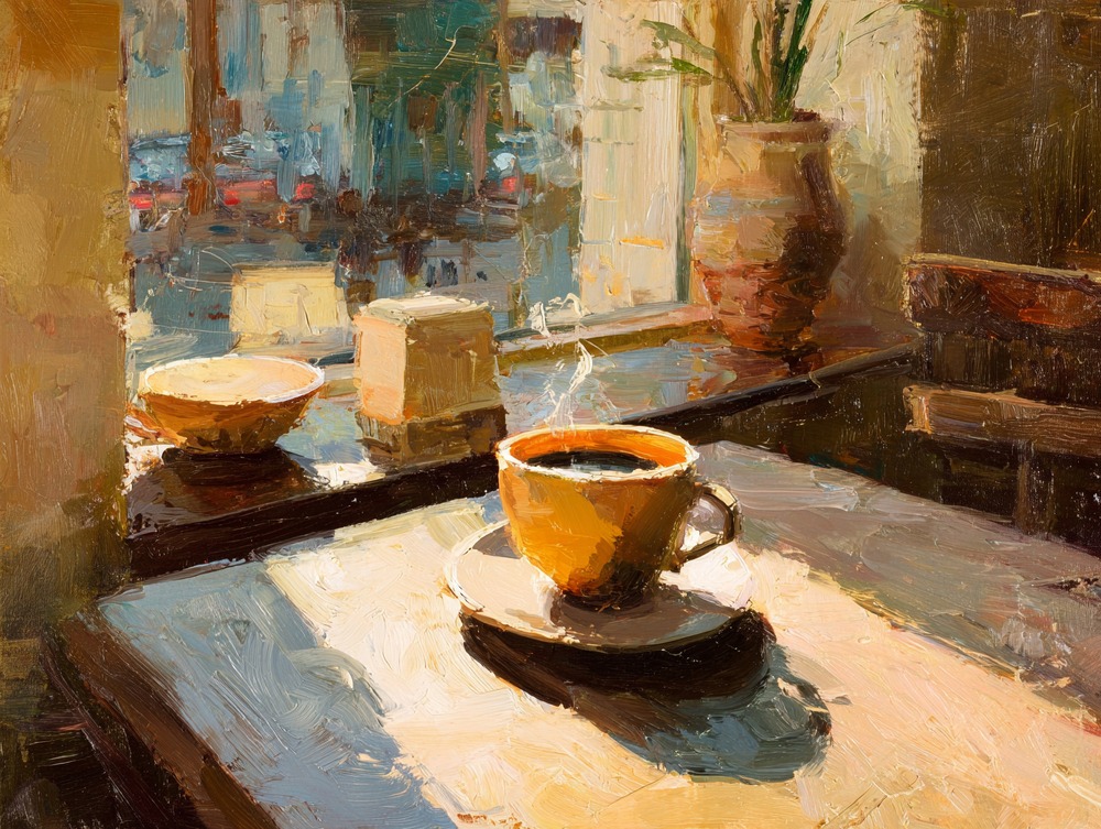 重厚な筆跡から伝わるコーヒーの温もり。静かな光に包まれて、心まで解けるような休息を。