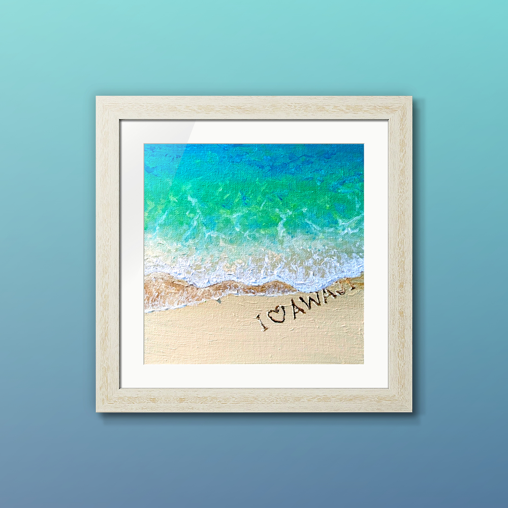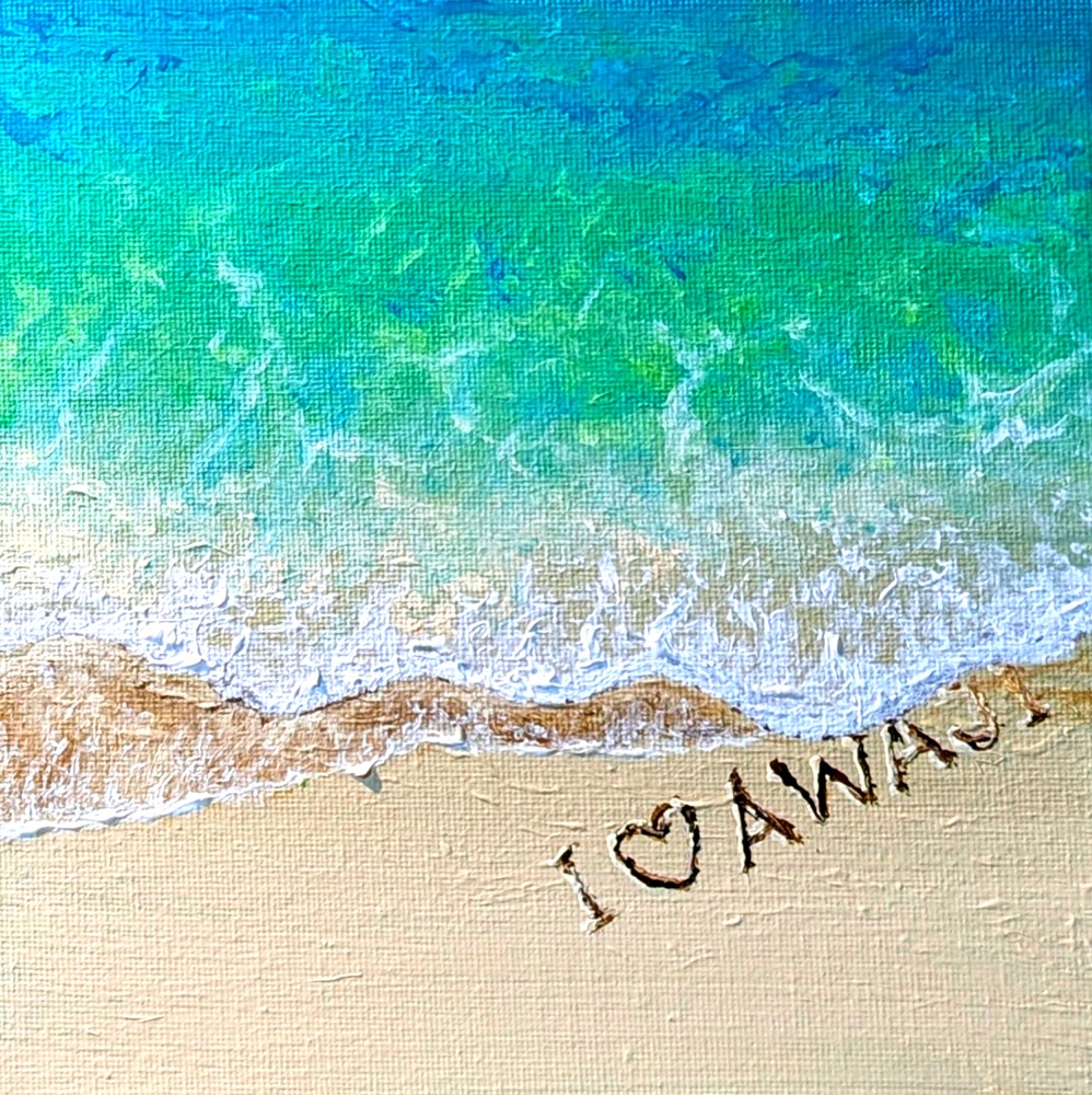 淡路島の海はとても穏やかでのんびりしたムードが漂います。砂に書かれたメッセージに少し微笑んでしまう。