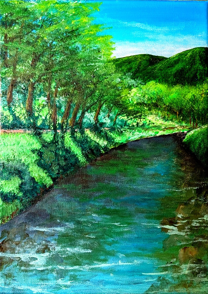 長かった冬もようやく終わりようやく春の音が聞こえてきました。よく晴れた日ならもう初夏を思わせるような色彩が目に飛び込んできます。春に始まり夏に育つというサイクルをしっかり感じて描きました。