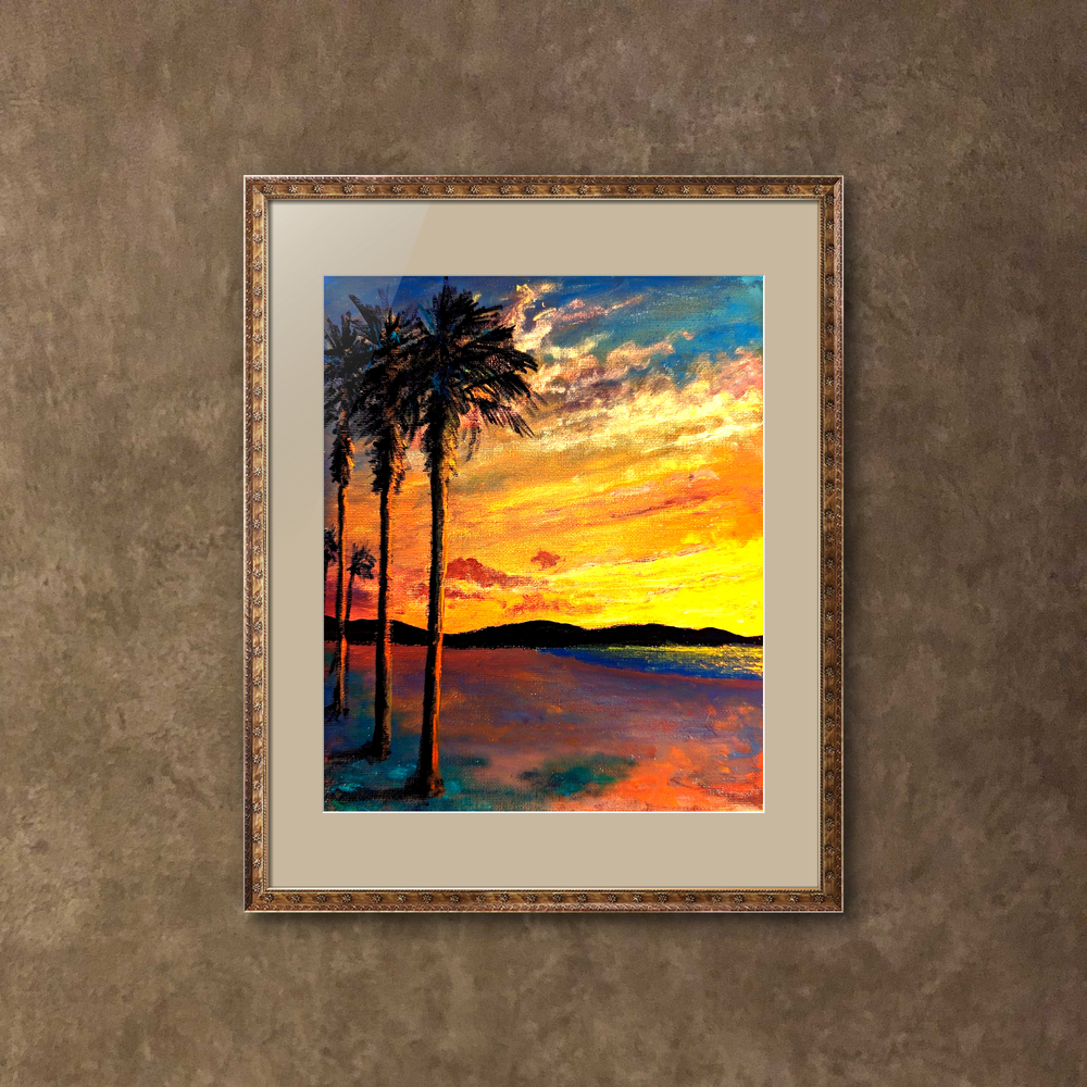 淡路島の南海岸は夕陽の名所でもあります。大きな夕陽が海に沈む様子は一日の終わりを一瞬華やかにしてくれます。寝室に飾っていただくと安らぎの眠りにつくお手伝いになることと思います。