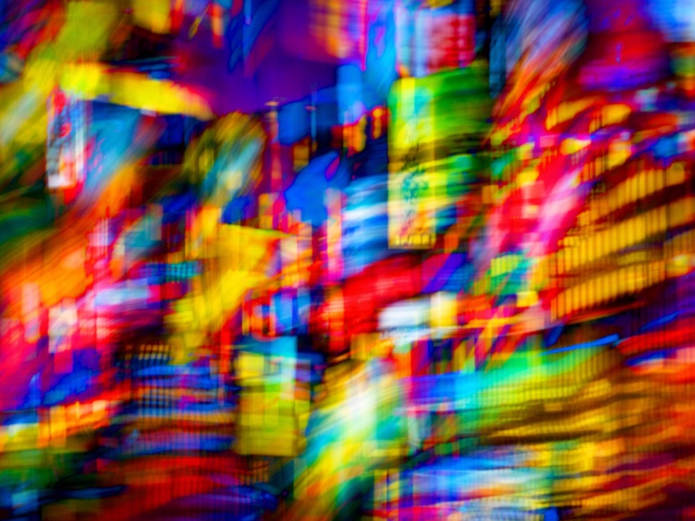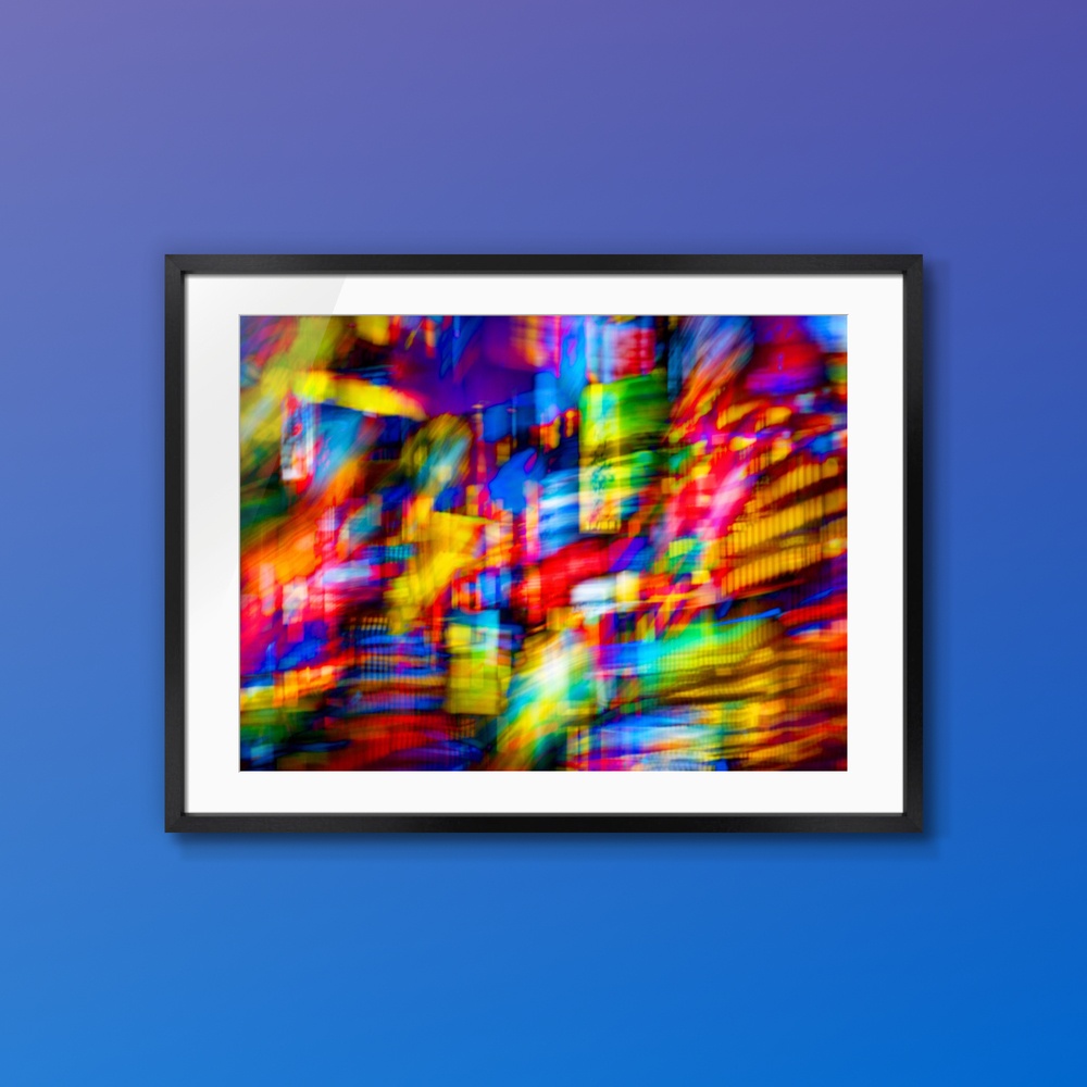 都市の光と情報の断片が、格子状の層をつくりながら高速で流れていく作品。色はただ散るのではなく、重なり、ずれ、交差しながら、速度そのものが構造を持った場として立ち上がっています。Matrix of Velocity, Op.005 は、都市のノイズの中に潜む秩序と流動の美しさを捉えた一枚です。