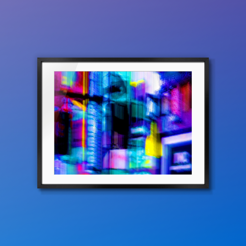 都市の光がにじみながらも、縦方向の筋や面の重なりを残し、格子のような構造へ再編されていく作品。輪郭は曖昧でありながら、配列の法則は失われず、光の中に静かな秩序が立ち上がっています。 Lattice of Light, Op.011 は、都市の残像を構造として捉えた一枚です。