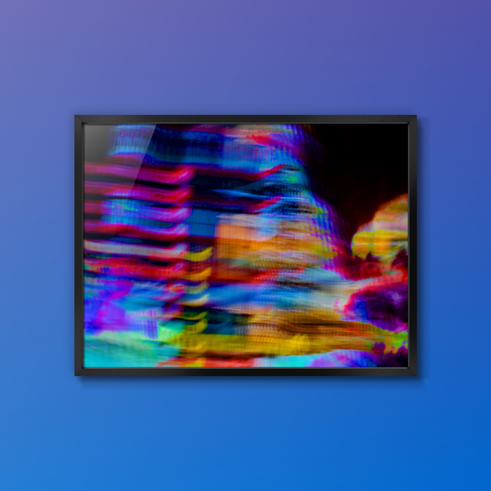 横方向へ流れる色の帯が、反復とずれを伴いながら重なり合い、層同士が共鳴するように構成された作品。ピンク、シアン、黄の光は独立せず、わずかな位相差を持って干渉し合い、画面全体に静かな秩序を生み出しています。Resonant Layers, Op.015 は、色彩の重なりの中にあるリズムと構造の美しさを捉えた一枚です。