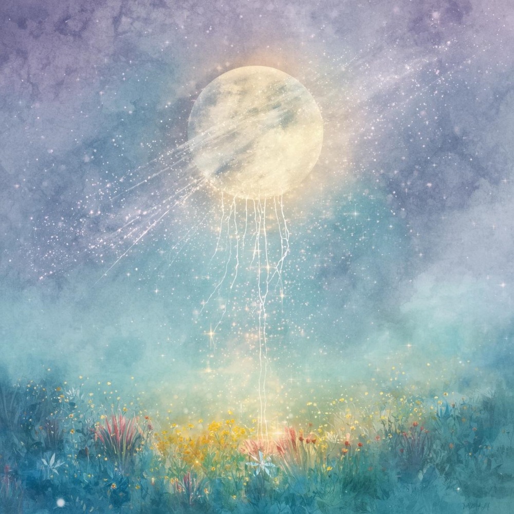 Title:「月光の祝福 ― 宇宙と大地をつなぐ光の庭 ―」