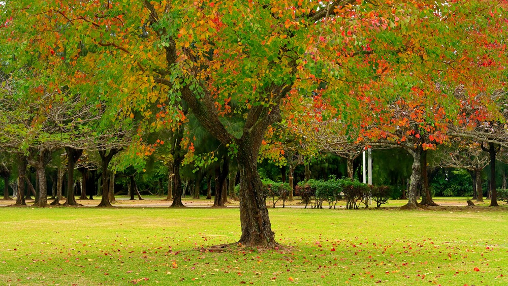 沖縄島でも温帯的な紅葉を楽しませるナンキンハゼが、沖縄県総合運動公園のキャンプ場の冬にありました。