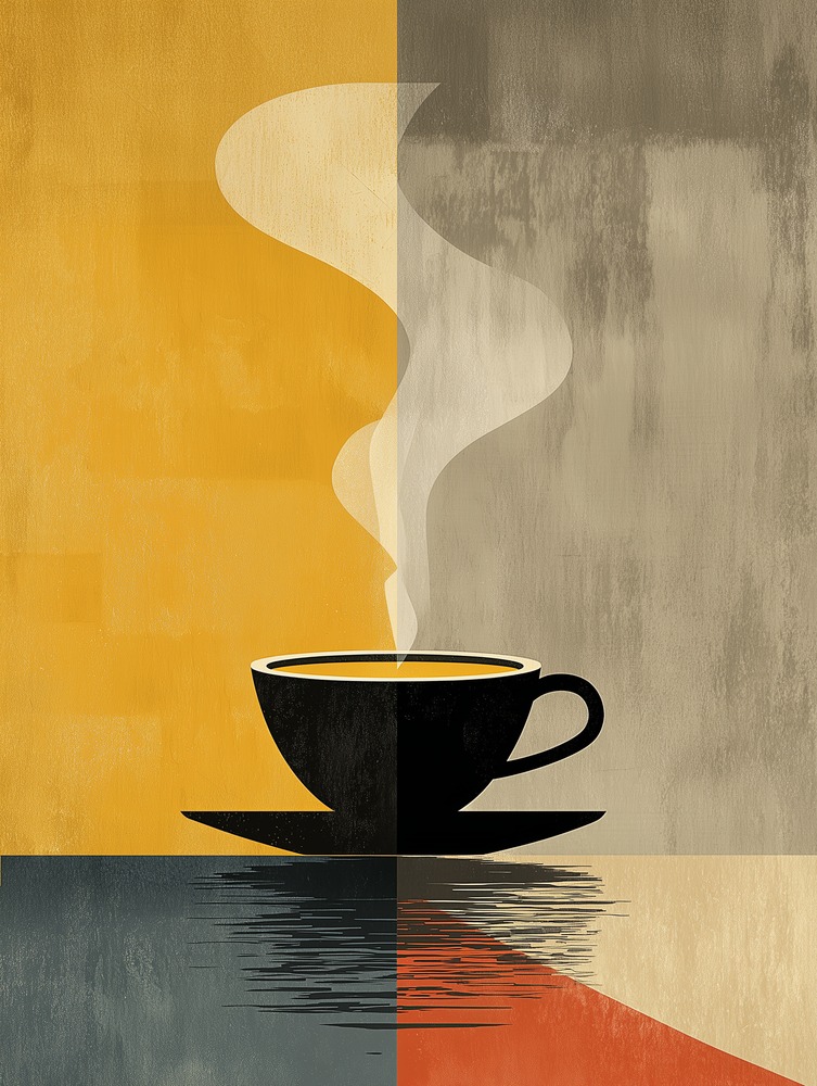 立ち上る湯気を眺める、穏やかなひととき。モダンな色使いが、忙しい心に静かな余白を届けてくれます。
