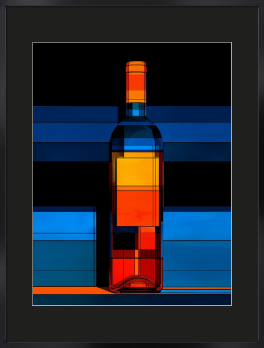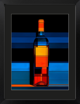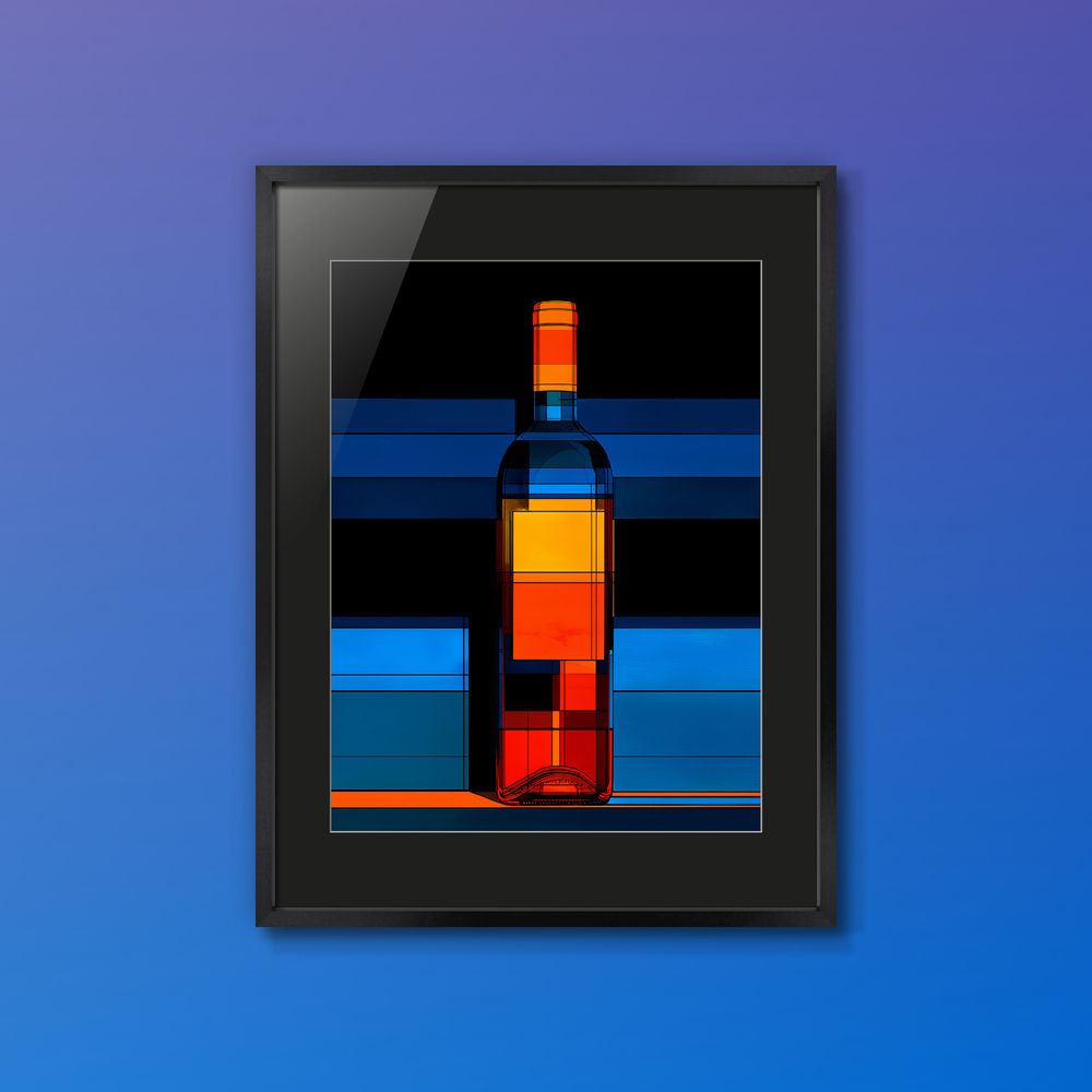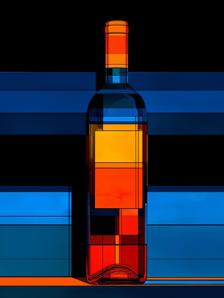 光と影が交差する静かな夜。グラスを傾ける前の、高揚感と静寂を幾何学的な色彩で描き出しました。