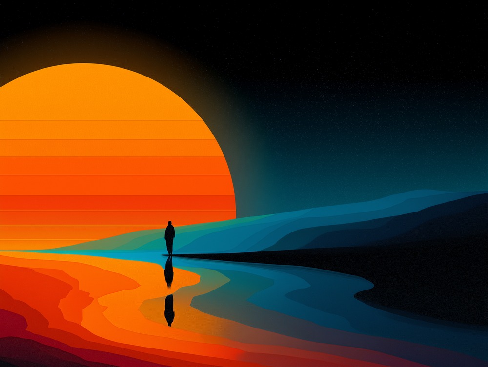 燃えるような光に包まれて、心もゆっくりと染まっていく。静かな海の音に耳を澄ませるひとときを。