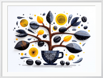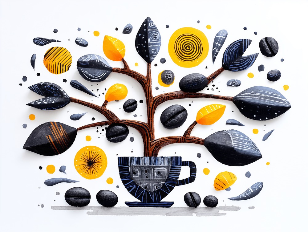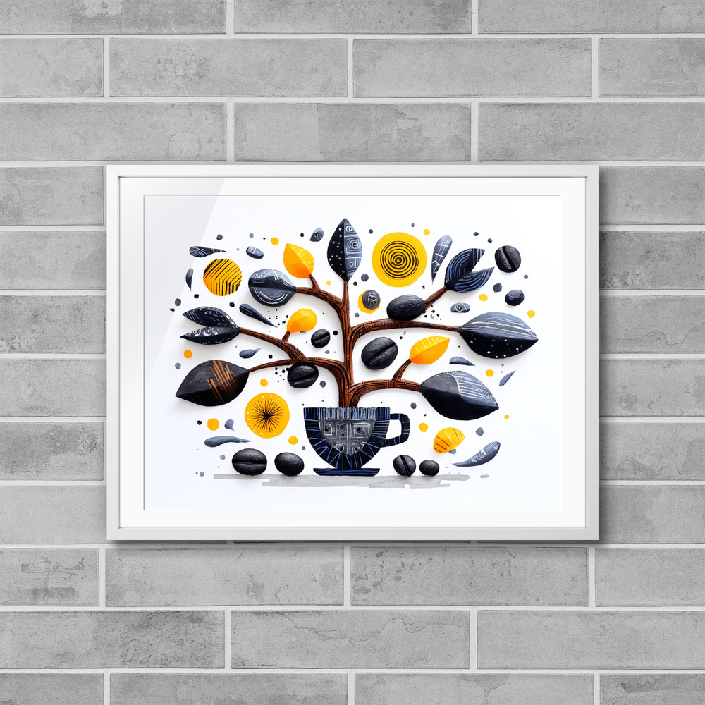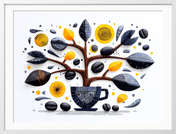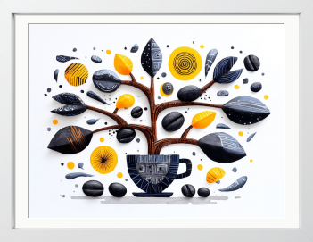 一杯のコーヒーから広がる豊かな想像力。遊び心あふれる図形たちが、朝のひとときに活力を与えます。