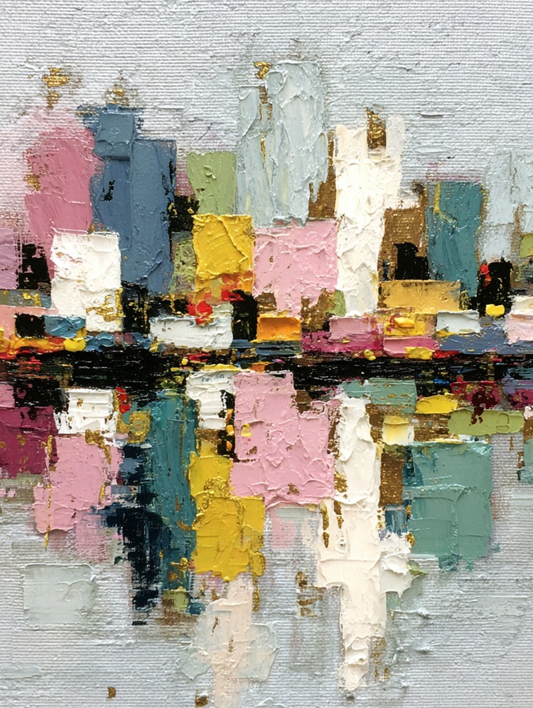 街に散りばめられた光を組み合わせてデザインしました。眺めるたびに心が整う、色の重なりをどうぞ。