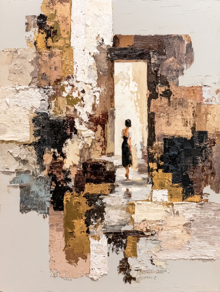 抽象的な色の重なりの中に、一歩踏み出す勇気を描きました。新しい物語が始まるような予感を楽しんで。