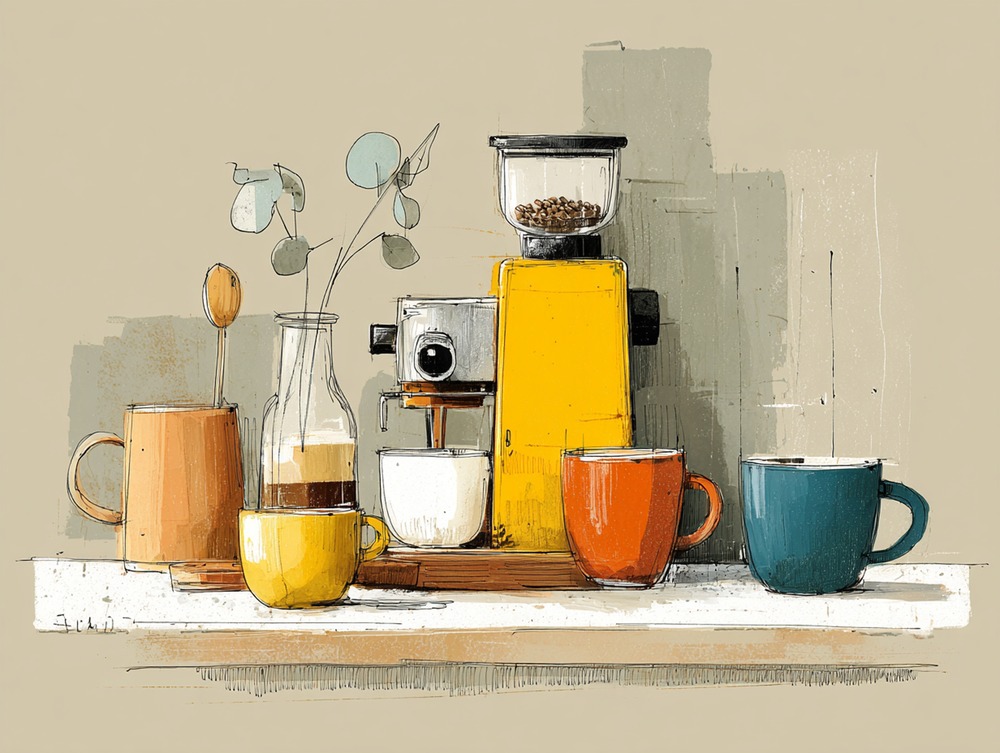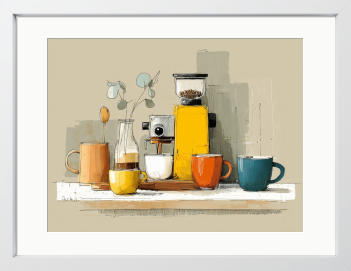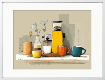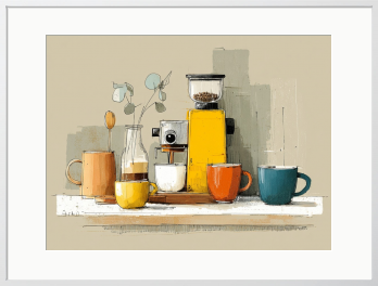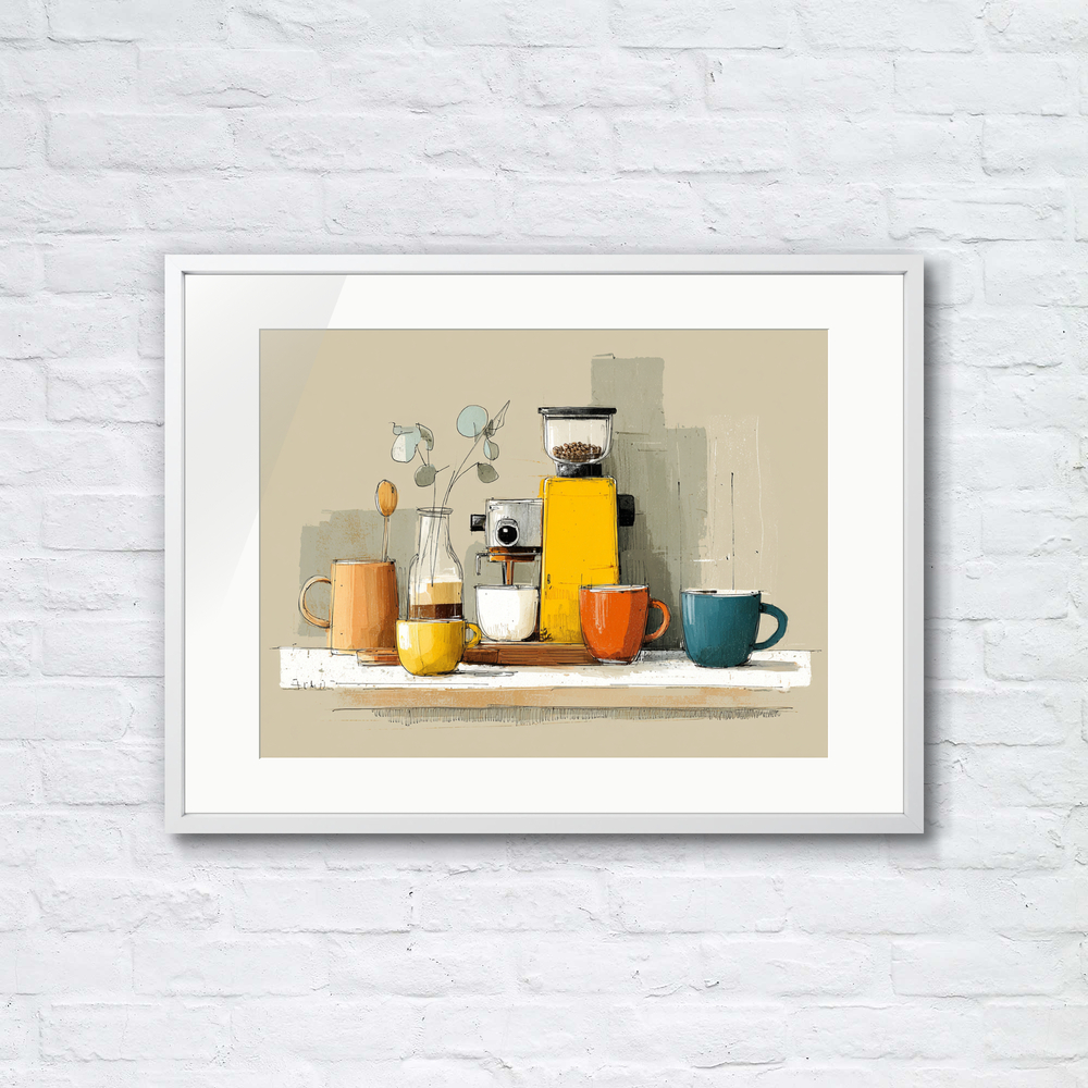 淹れたての香りが漂うような、心地よい朝の空気をそのまま形にしました。暮らしにそっと彩りを添える一枚です。