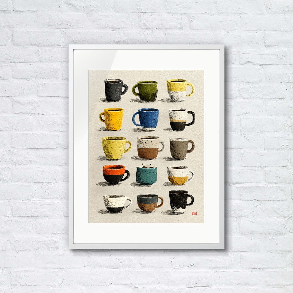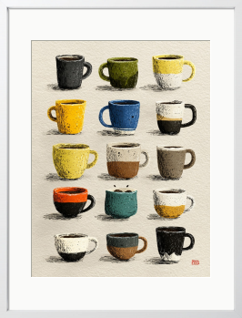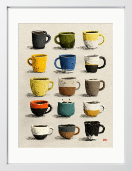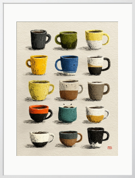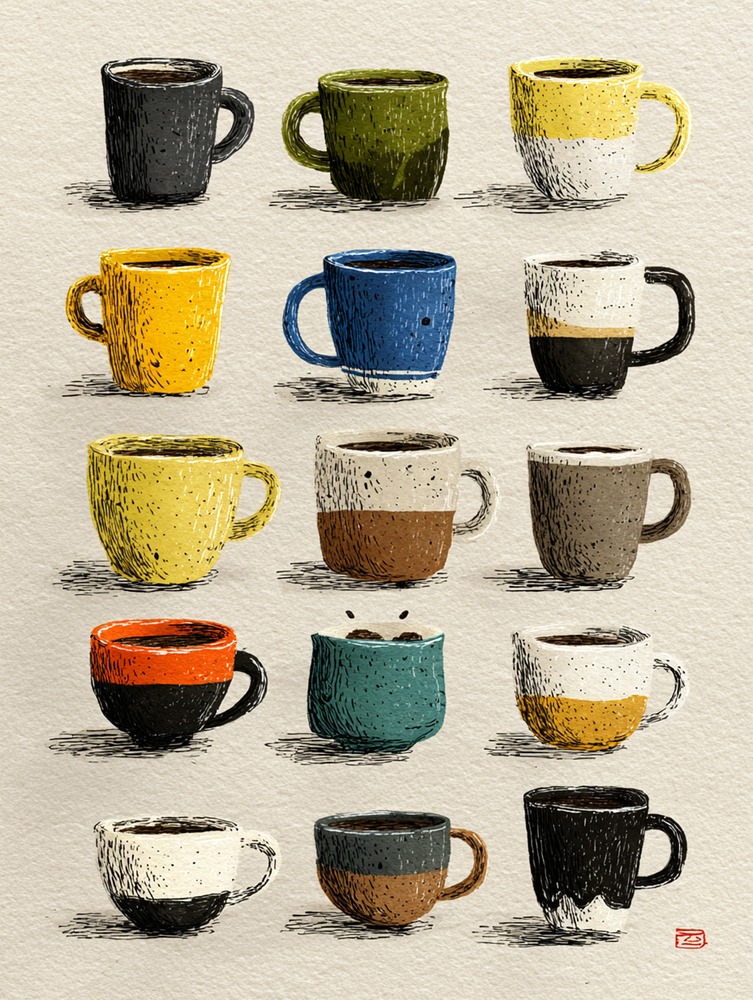 ひとつひとつ違う表情を持つカップたち。今日を彩るお気に入りの一つを選ぶような、楽しい時間を描きました。