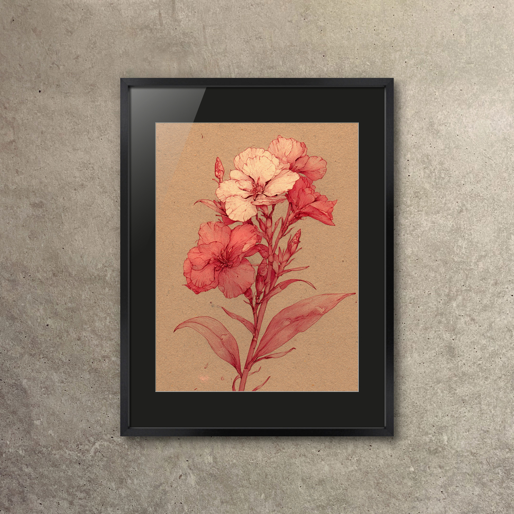 赤い線だけで描いた、静かな一枝。色の重なりが生み出す温もりが、お部屋をそっと優しく包みます。