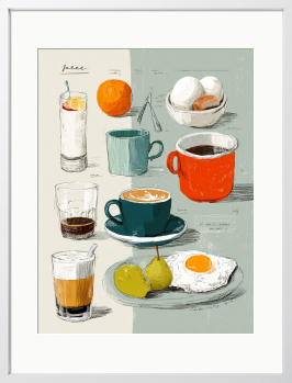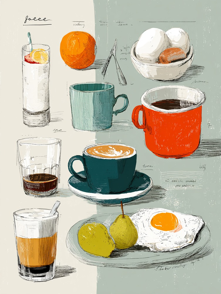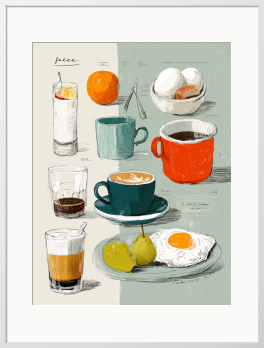 好きなものを集めた図鑑のような楽しさ。手描きの線と色彩が、キッチンの何気ない風景を軽やかに彩ります。