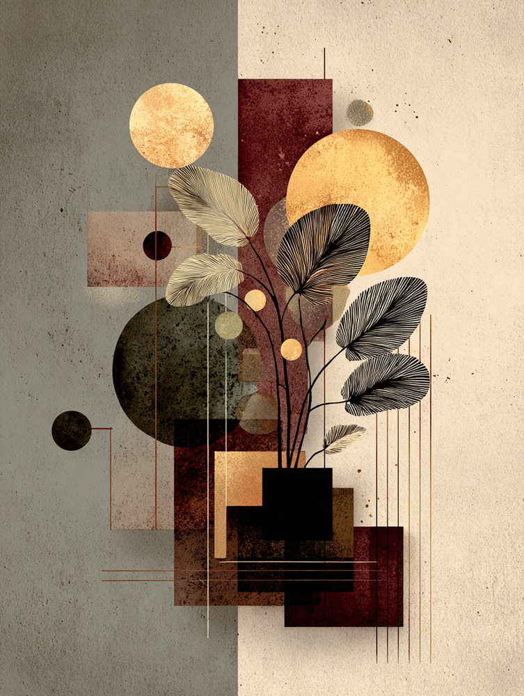 緻密な構成と、伸びやかに広がる植物の命。モダンな静寂が、暮らしに穏やかな奥行きを添えてくれます。