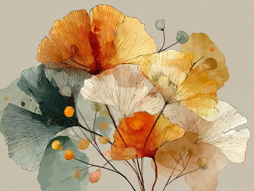 透き通る色彩を丁寧に重ねて、秋の静かな気配を描きました。お部屋で過ごす時間がもっと愛おしくなります。