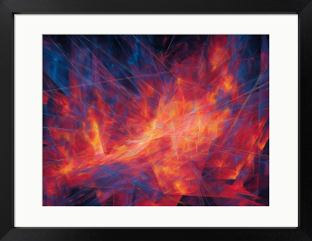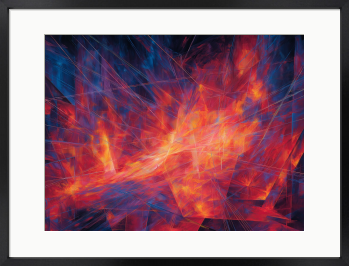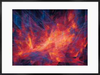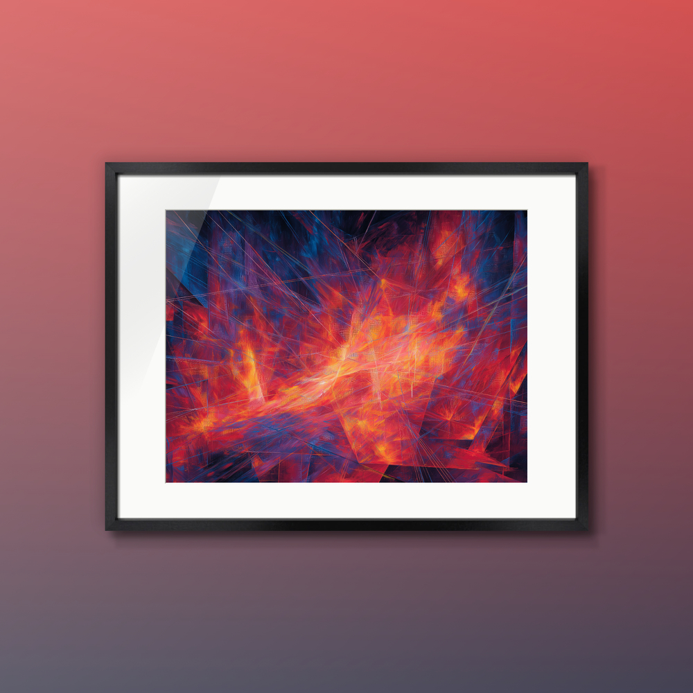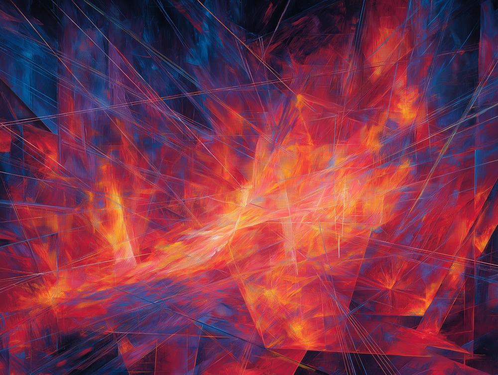 思考の断片が交差し、中心から熱量が溢れ出す。静寂を切り裂くような、蒼と紅の鋭いコントラスト。