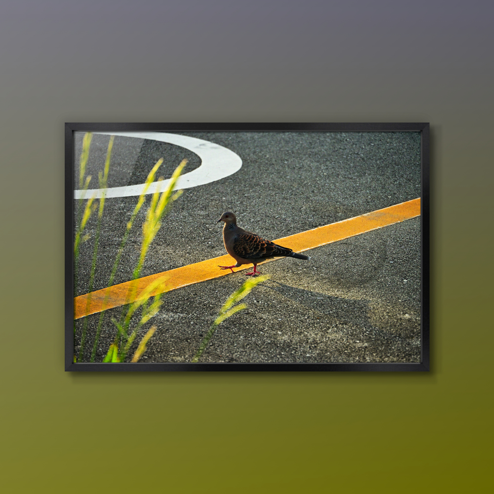 朝の駐車場で陽気にステップを踏むかのようなキジバトと出会いました。