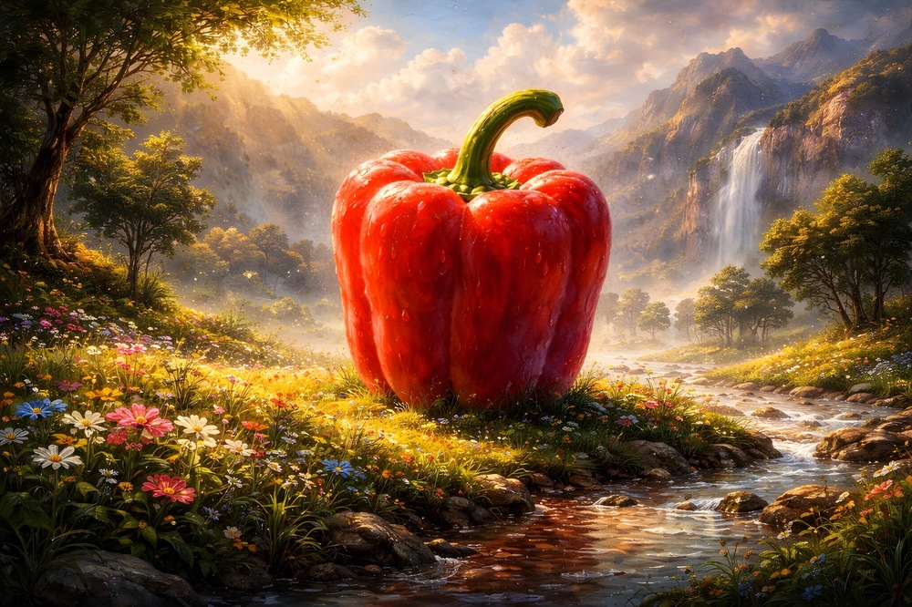 大自然の中にパプリカ一つ。 AIを利用したアート作品