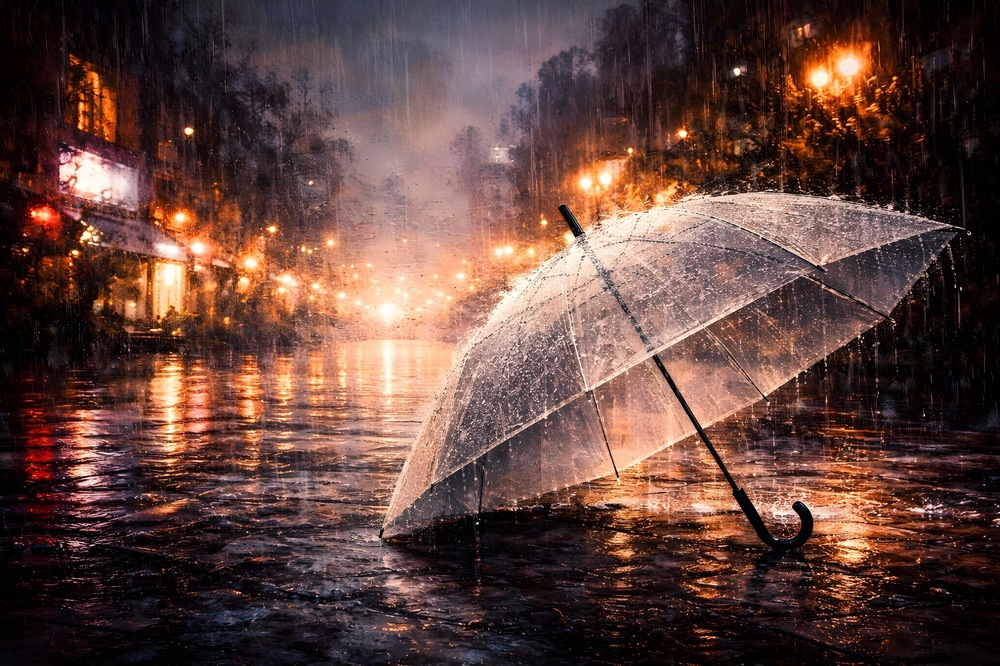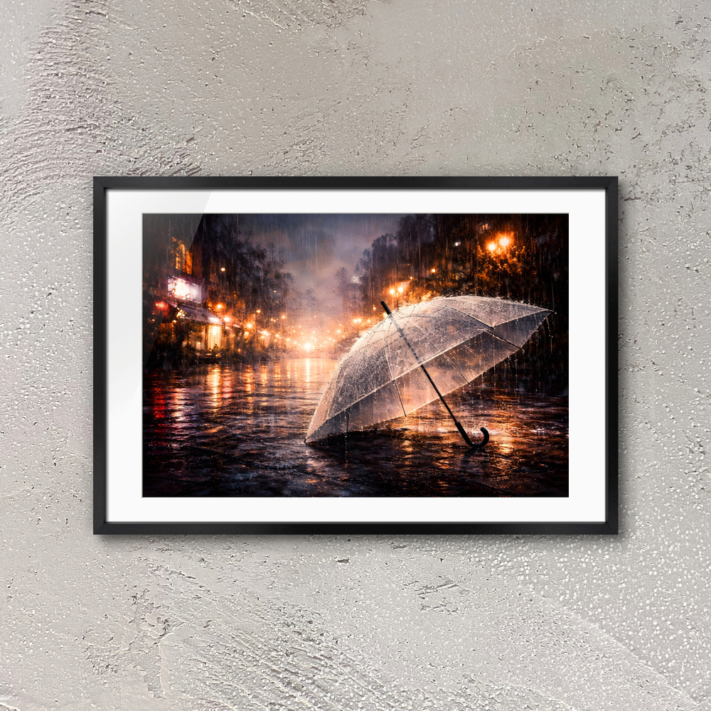 雨遁れても傘の中君いないのなら愛削がれ。 別れや心に振るような切なさ、強がりと虚しさを抱えてる心情。 AIを利用したアート作品。