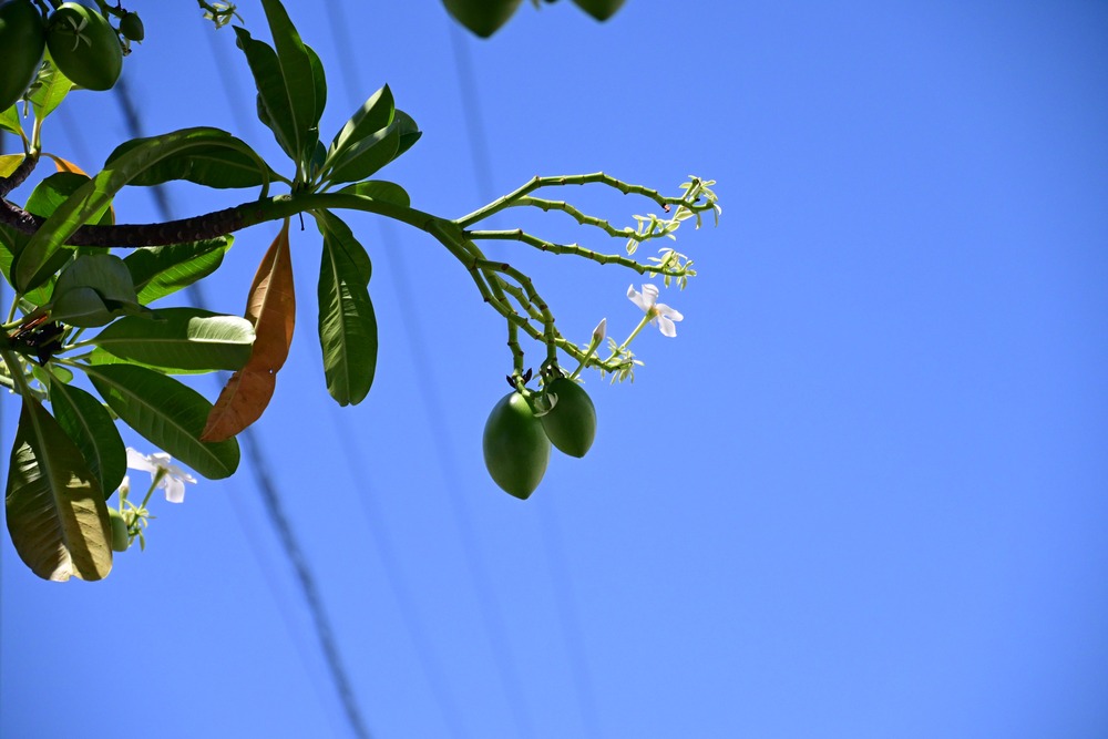 Title:夏の晴天に輝く白い花(オキナワキョウチクトウ)