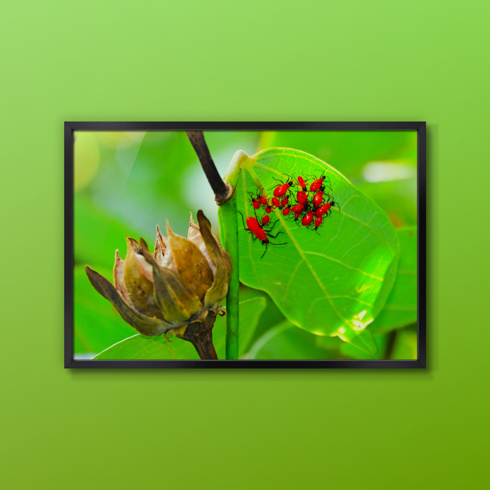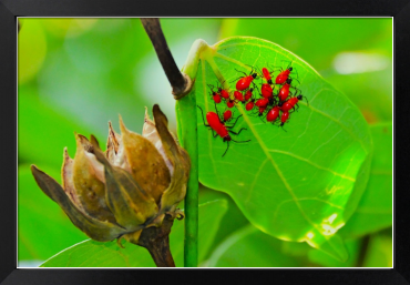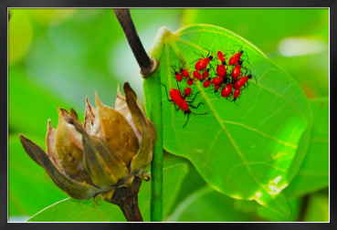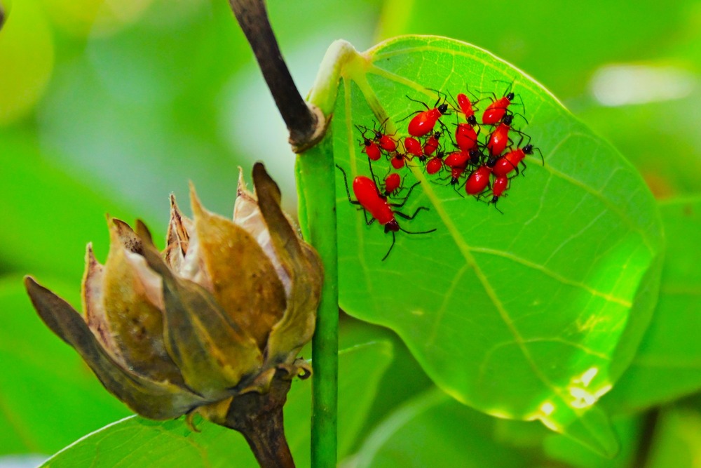 オオハマボウの葉の上に、真っ赤なカメムシの幼虫の集団がいました。まるで保育園の様でした。