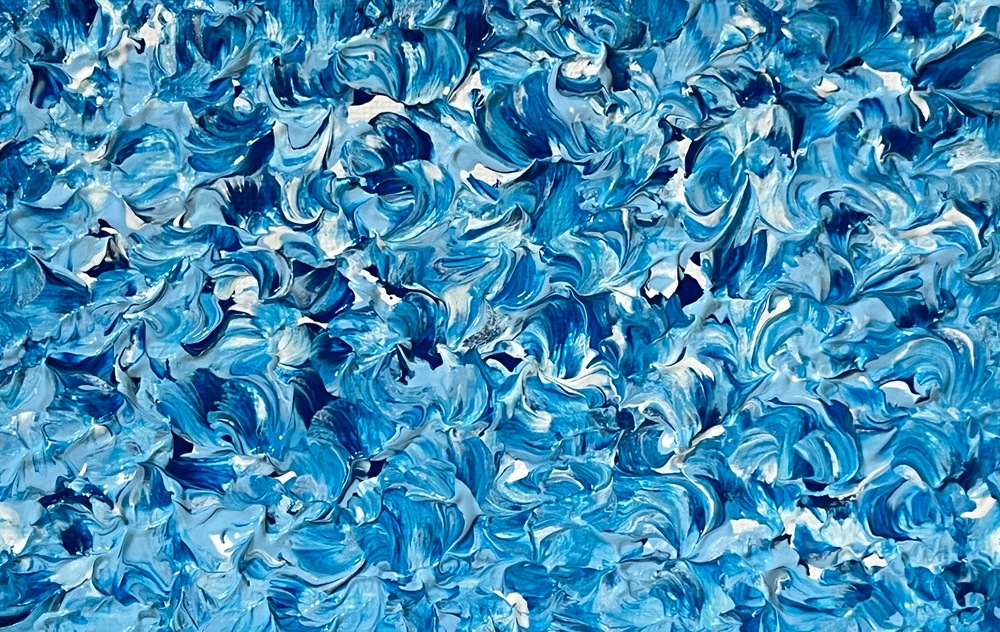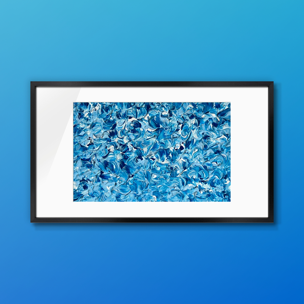 青い小花が静かに咲き誇るような、穏やかな青の渦巻きが心を優しく包み込む抽象画です。青い波のように広がる色彩は、観る人に冷静さと穏やかさをもたらし、心の奥深くまで響く特別な体験を提供します。この作品をお部屋に飾ることで、日常生活に安らぎのひとときを取り入れることができるでしょう。