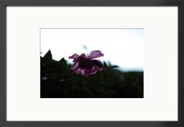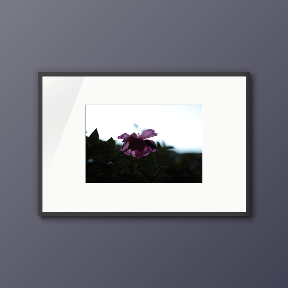 空からの光を背に、シルエットのように浮かび上がる花の表情を捉えました。 背景の思い切った余白(白)と、手前の深い影が作るコントラスト。 静かな緊張感と優しさが同居した一枚は、モダンな空間の壁面に凛とした空気をもたらします。