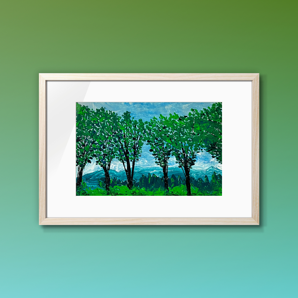 Immerse yourself in an emerald forest of layered greens that whisper safety and deep restoration. Painted at midnight by a heart specialist as medicine for the soul. Perfect for the bedroom or a quiet corner, this work creates a forest-bathing effect at home. It reduces stress, promotes emotional safety, and gently restores vitality — allowing you to breathe deeper and wake up feeling protected, balanced, and quietly renewed.