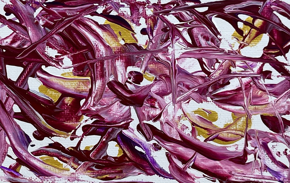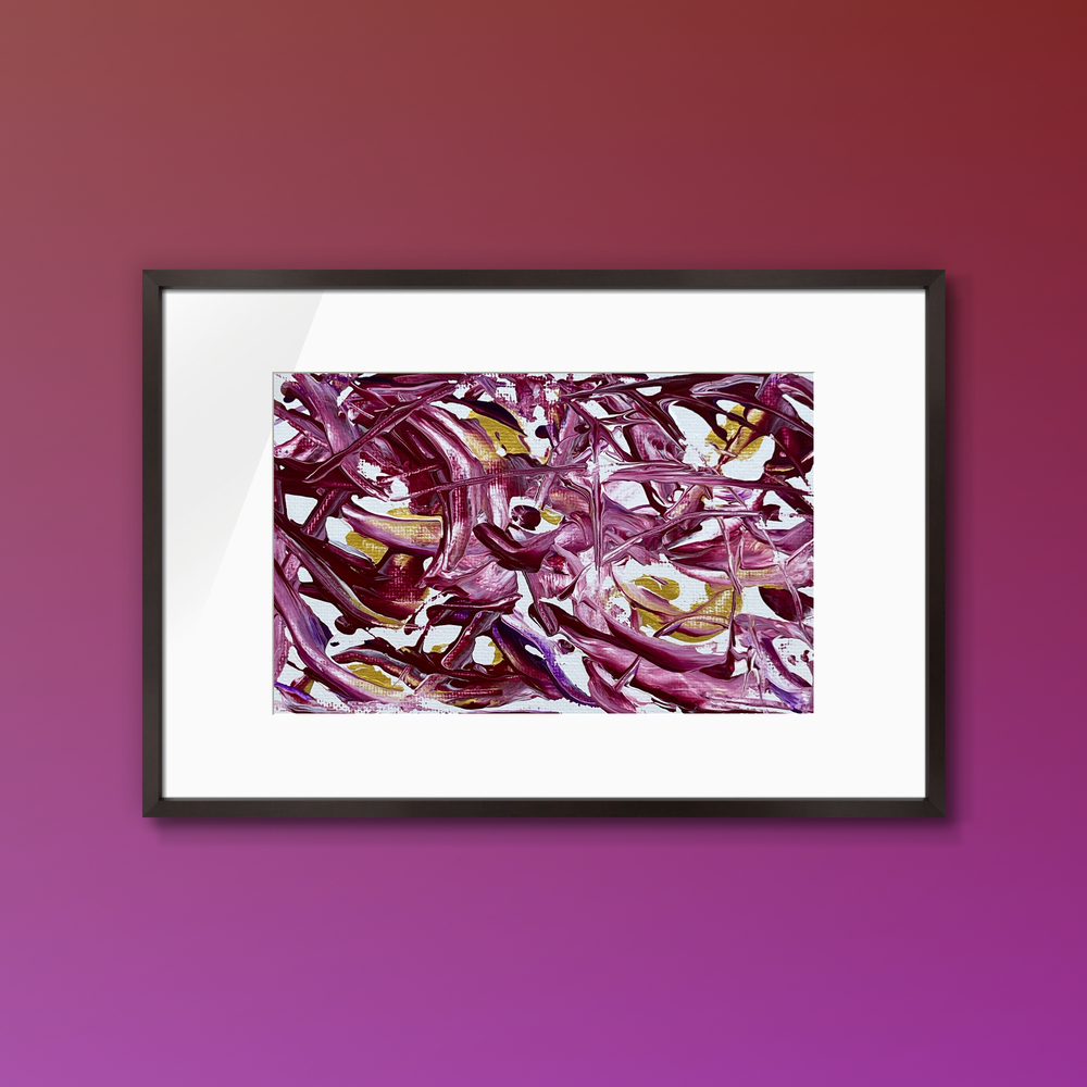 Rich plum velvet tones wrap you in a deep, velvety embrace with subtle golden threads. A sophisticated healing abstract painted by a cardiologist during quiet midnight hours. Place it on a calmer wall in the living room or bedroom for mature serenity. The luxurious depths promote emotional grounding, reduce anxiety, and offer a sense of being softly held — perfect for unwinding, cultivating inner strength, and enjoying refined peace at home.