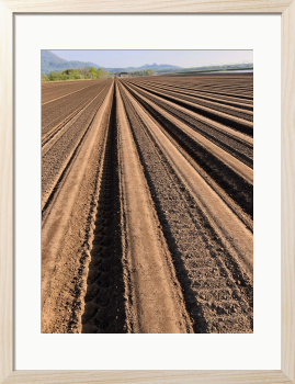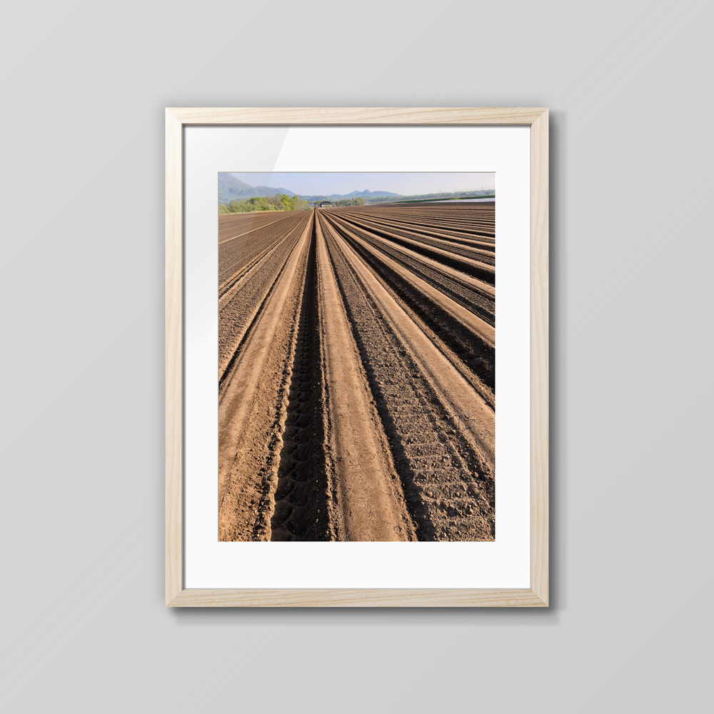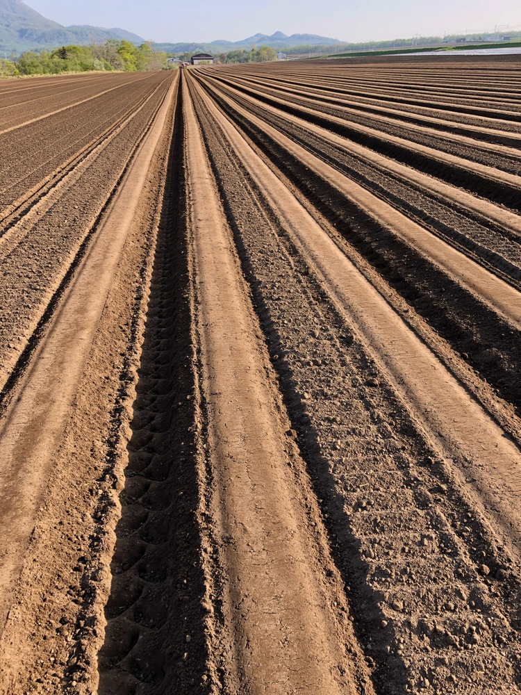 植え付け作業が終わったばかりの長い長い畝 北海道のじゃがいもの植え付け風景