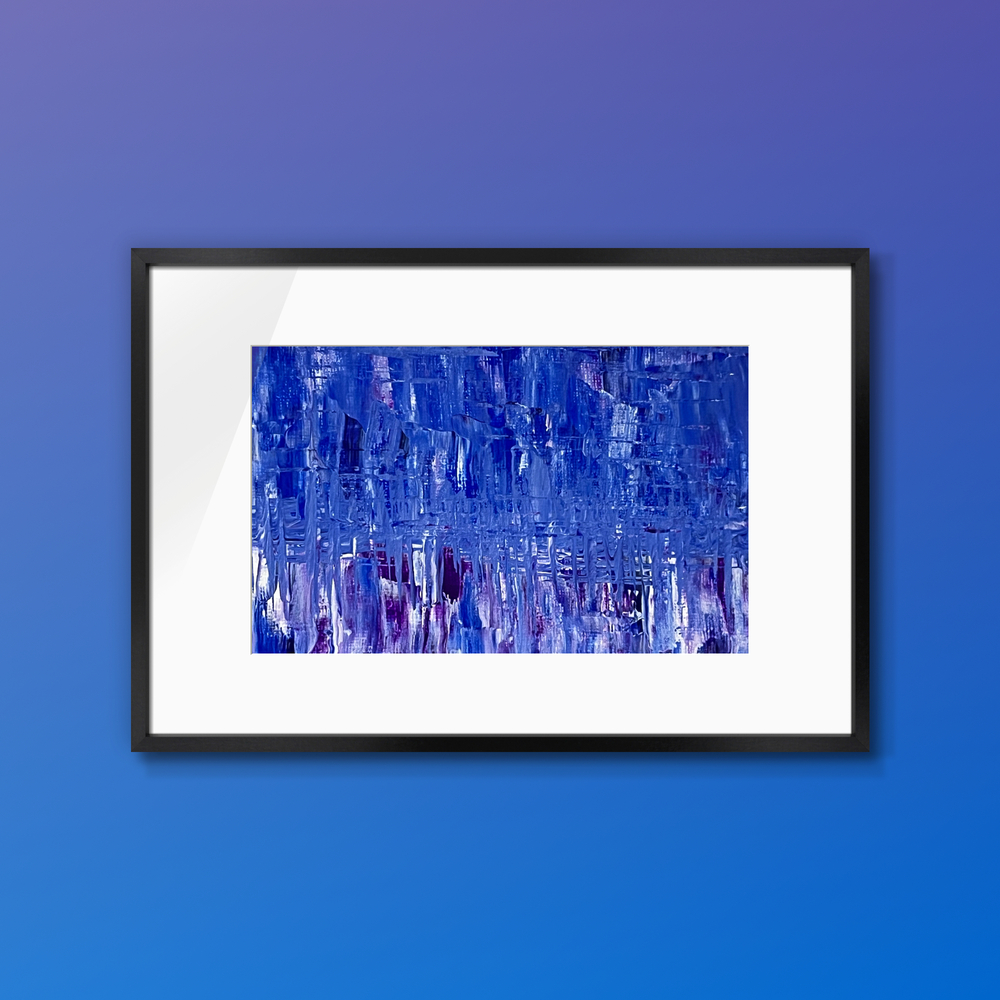 This abstract painting captures “Midnight Sapphire Drape (115)” — where deep sapphire blue and purple layers gently fall like elegant drapes in the quiet of night. The mysterious, jewel-like tones wrap the heart in refined melancholy and graceful depth, inviting calm introspection and feminine elegance. Placing it in your room creates an eternal midnight veil that transforms the space into a serene jewel box, offering quiet comfort, inner peace, and a sophisticated sense of healing even on slee