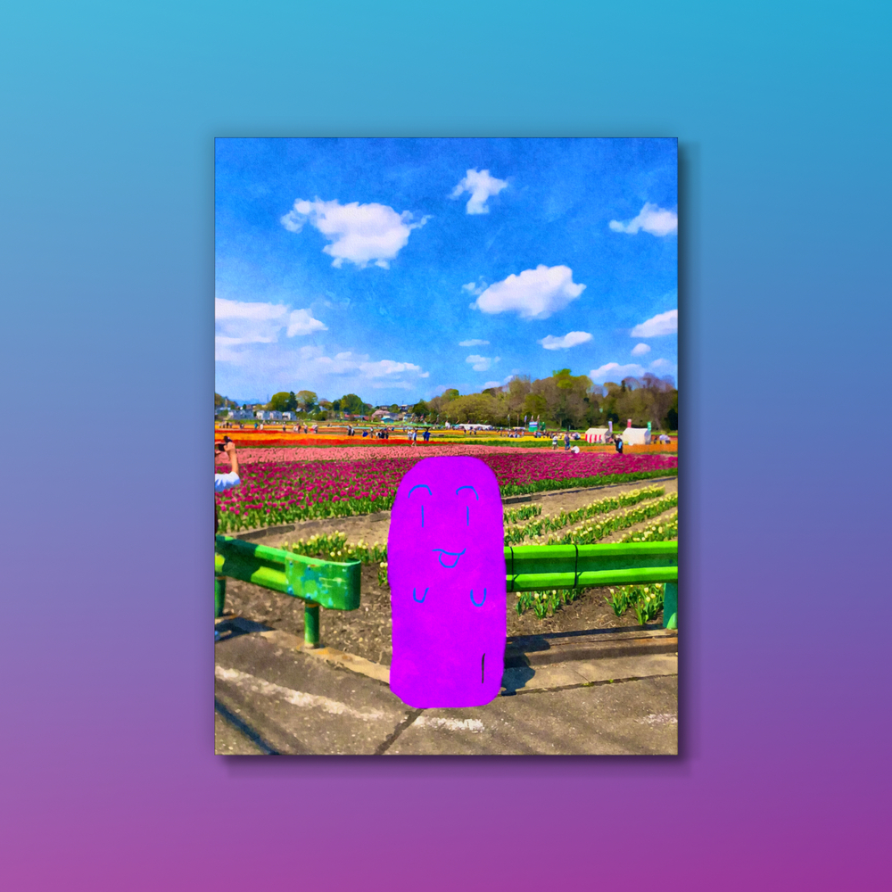 私は「気楽に今を楽しむ」をコンセプトに各地に赴いて人が写り込んだ風景を撮り、その実際の写真を絵画風にしてキャラクター(焦喰)を被せて観光絵画を制作しています。観光や散歩や迷走が好きなので、その瞬間を気楽に楽しんだ気持ちを伝えられたらと思います。制作過程でこだわっているのは観光や迷走を義務感なく楽しむことです。