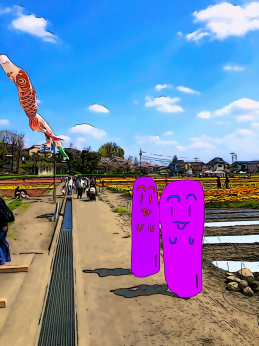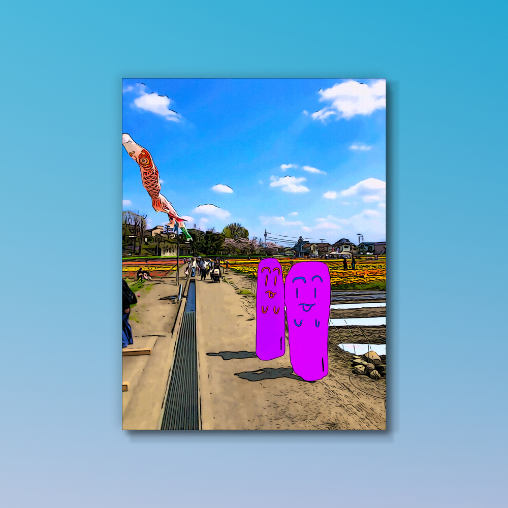 私は「気楽に今を楽しむ」をコンセプトに各地に赴いて人が写り込んだ風景を撮り、その実際の写真を絵画風にしてキャラクター(焦喰)を被せて観光絵画を制作しています。観光や散歩や迷走が好きなので、その瞬間を気楽に楽しんだ気持ちを伝えられたらと思います。制作過程でこだわっているのは観光や迷走を義務感なく楽しむことです。