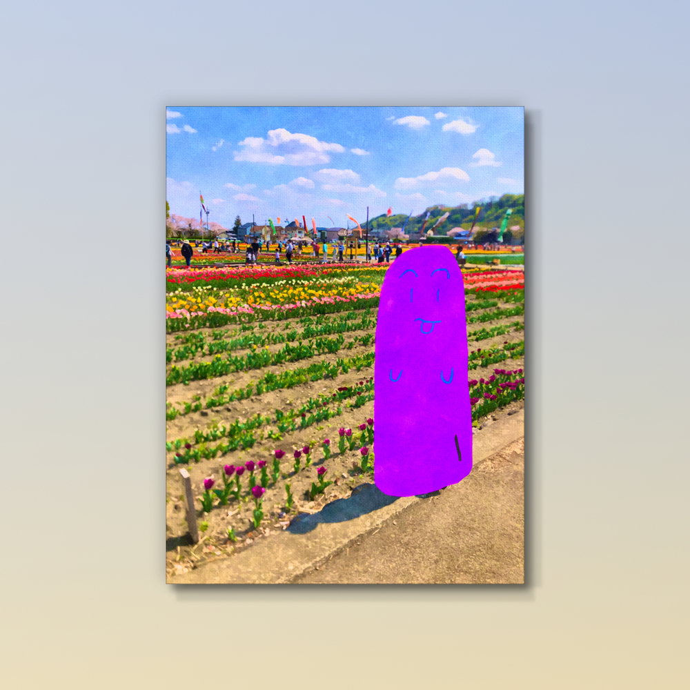 私は「気楽に今を楽しむ」をコンセプトに各地に赴いて人が写り込んだ風景を撮り、その実際の写真を絵画風にしてキャラクター(焦喰)を被せて観光絵画を制作しています。観光や散歩や迷走が好きなので、その瞬間を気楽に楽しんだ気持ちを伝えられたらと思います。制作過程でこだわっているのは観光や迷走を義務感なく楽しむことです。
